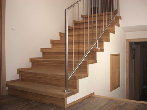 Altholzrecycling. Wangentreppen mit eingestemmten Trittstufen, Eiche Altholz geölt.