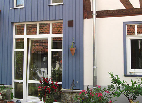 Gebäude mit viel Geschichte. Haustür mit Oberlicht / Sprossenfenster, Eiche lasiert.