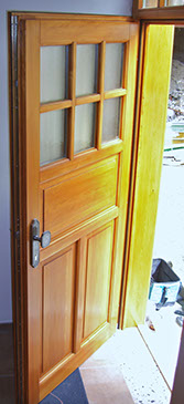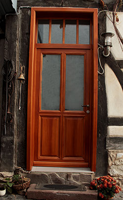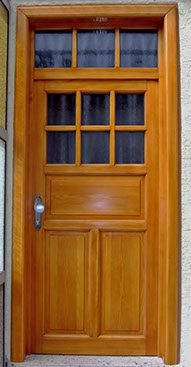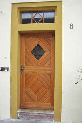 Gründerzeit lässt grüßen. Haustür mit Oberlicht, Kiefer lasiert.