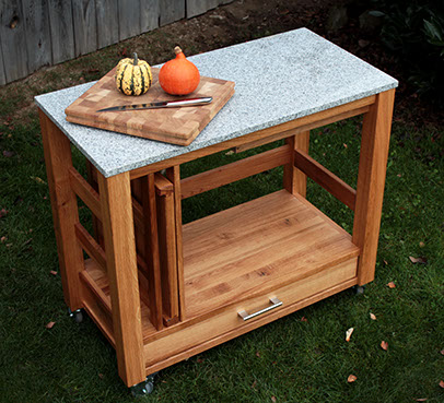 Mehr Arbeitsfläche braucht man immer. Küchenwagen mit Steinplatte, Eiche geölt.