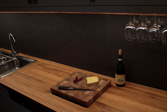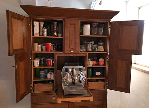 Ein besonderes Möbelstück, auch für Baristas. Küchenschrank, Eiche geräuchert / geölt.