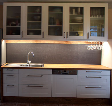 Unterschränke aus Schweden, der Rest heimisches Handwerk. Küche, Weißlack / Eiche geölt