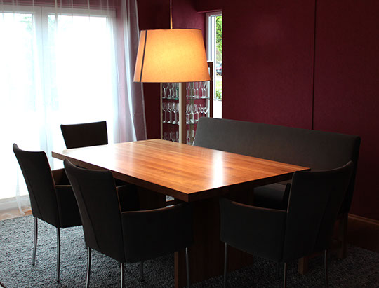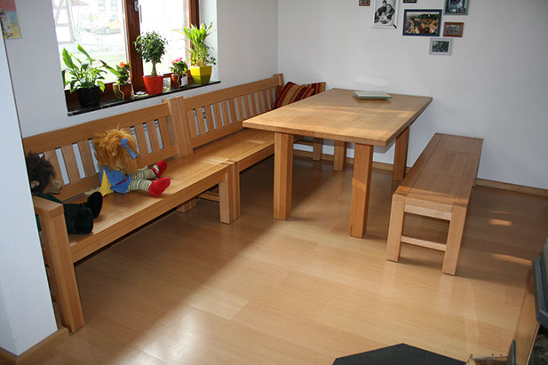 Individuelle Maße für individuelle Menschen. Esstisch mit Sitzbank, Buche geölt.