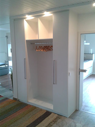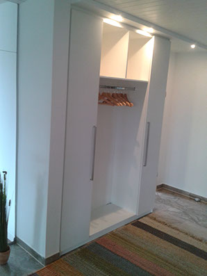 Etwas Platz findet sich irgendwie immer. Garderobenschrank, Weißlack.