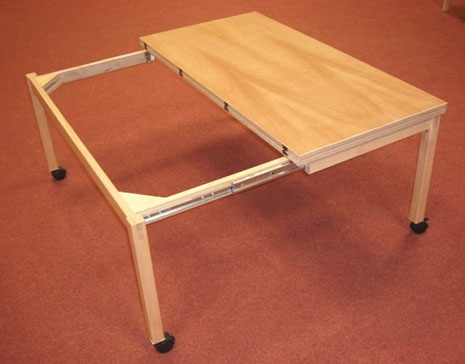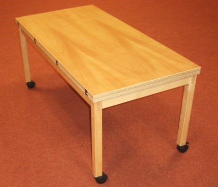 Große Tische für die Kleinen. Rollbare Kindertische, Buche / Multiplex lackiert.