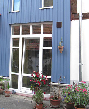 Gebäude mit viel Geschichte. Haustür mit Oberlicht / Sprossenfenster, Eiche lasiert.
