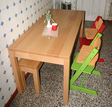 Individuelle Maße für individuelle Menschen. Esstisch mit Sitzbank. Eiche lackiert